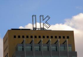 Een kwartier later ben ik in een stad die mompelt dat ze Utrecht heet. Ik loop het station uit. Naast het winkelparadijs staat een toren van beton en glas. Rijkskantoorgebouw, vertelt een bordje. Ik kijk omhoog, zoals velen die daar staan. “Diep”, hoor ik een kunstkenner fluisteren. Ik reikhals. Nu zie ik het ook: daar, boven op het dak. Twee enorme letters. Van staal en neon. Elk acht meter hoog. De letters I en K. Hoofd in m’n nek. Opkijkend. Tegen het almachtige Ik, in z’n hilarische grootspraak.